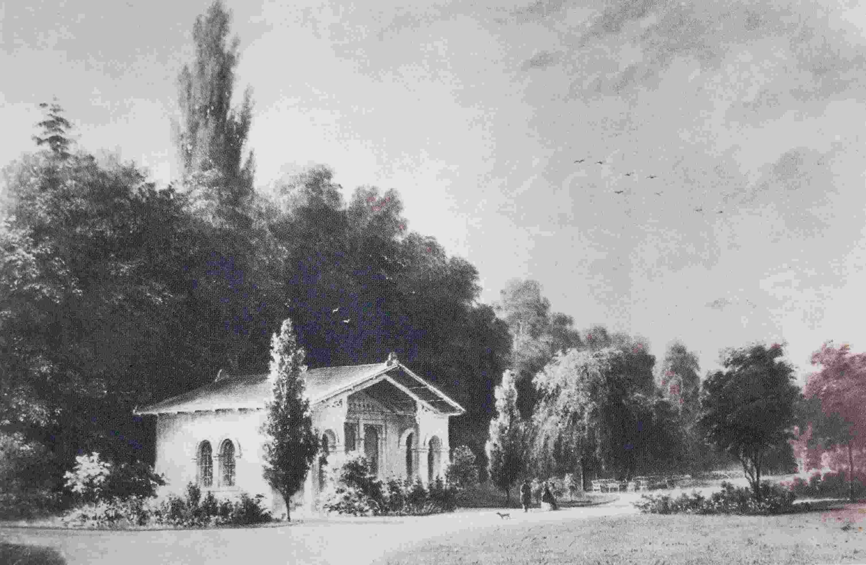 Der Landbaumeister des Fürstentums Lippe, Ferdinand Wilhelm Brune, entwarf ein sogenanntes Schweizerhaus mit flach geneigtem Dach, profilierten Pfettenköpfen und zierlichen Holzsägeelementen. In einer Zeit der Romantisierung von Natur als Reaktion auf die zunehmende Industrialisierung der Umwelt waren Schweizerhäuser eine zeittypische Bauaufgabe. Auf den Aquarellen und Zeichnungen des bekannten lippischen Kunstmalers Ludwig Menke lässt sich die ehemals idyllische Lage und Atmosphäre des Teehauses gut nachvollziehen.
